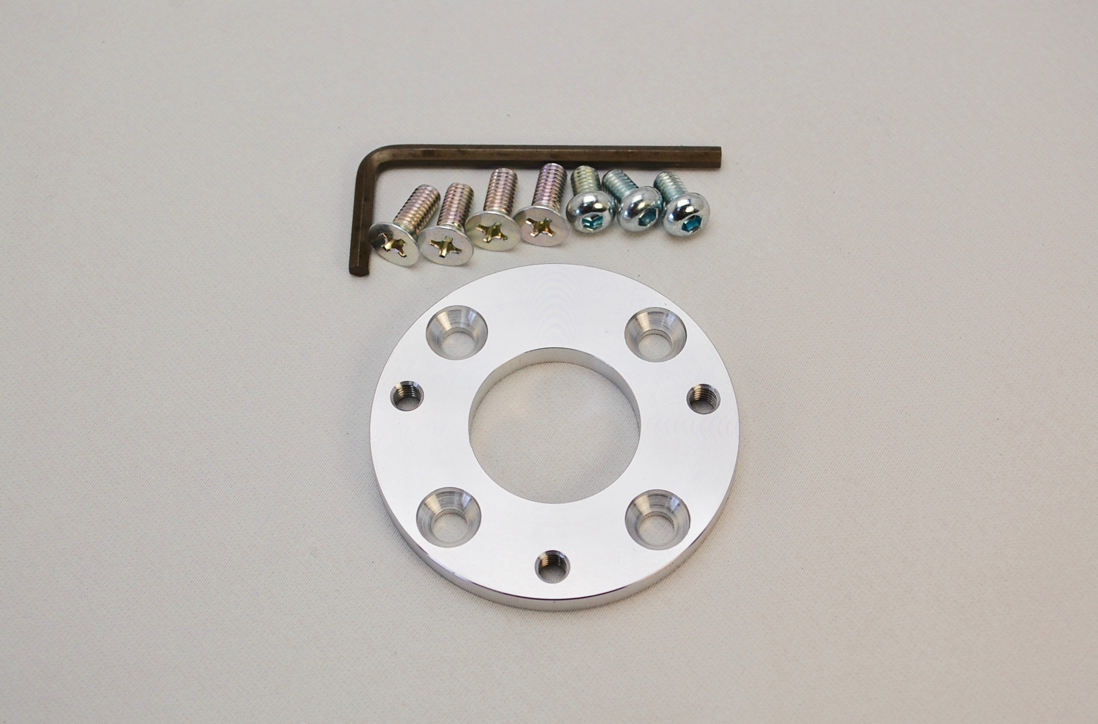M6×10の六角穴付小頭皿ボルト3本及びレンチとアダプター固定用のM6皿ボルト4本、ホーンボタンベースプレート固定用M4ボルト、ホーンボタンレス時用のM6×10ボタンボルト3本及びレンチが付属致します。